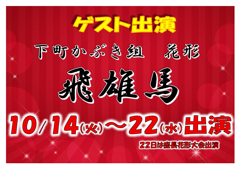 ・10月14日(火)~22日(水) 下町かぶき組 花形 飛雄馬 出演