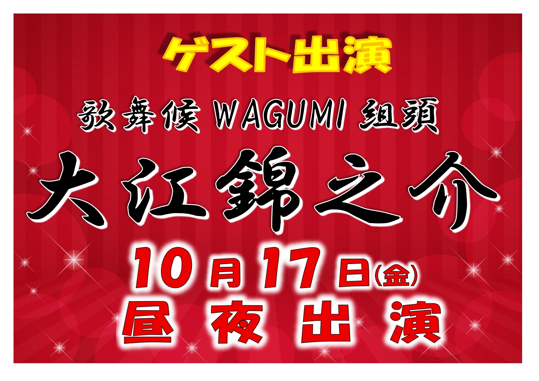 ・10月17日(金) 歌舞候WAGUMI 組頭 大江錦之介 昼夜出演