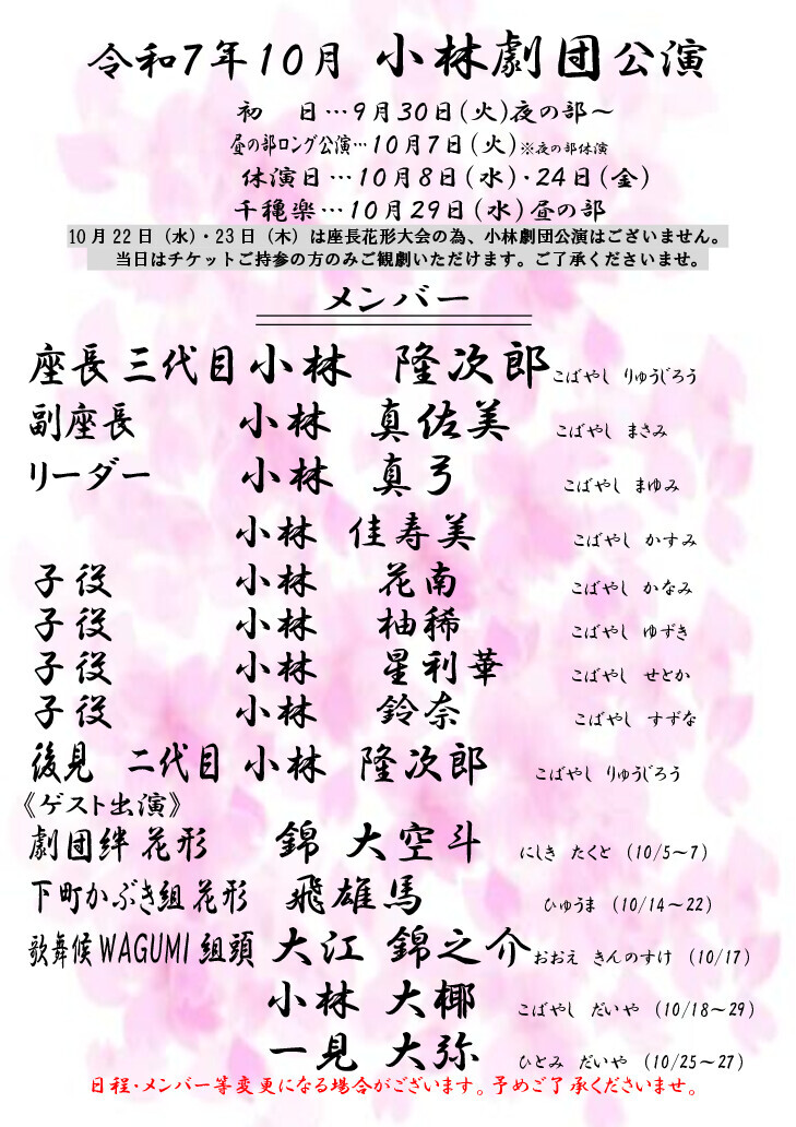 令和7年10月は、小林劇団公演です。