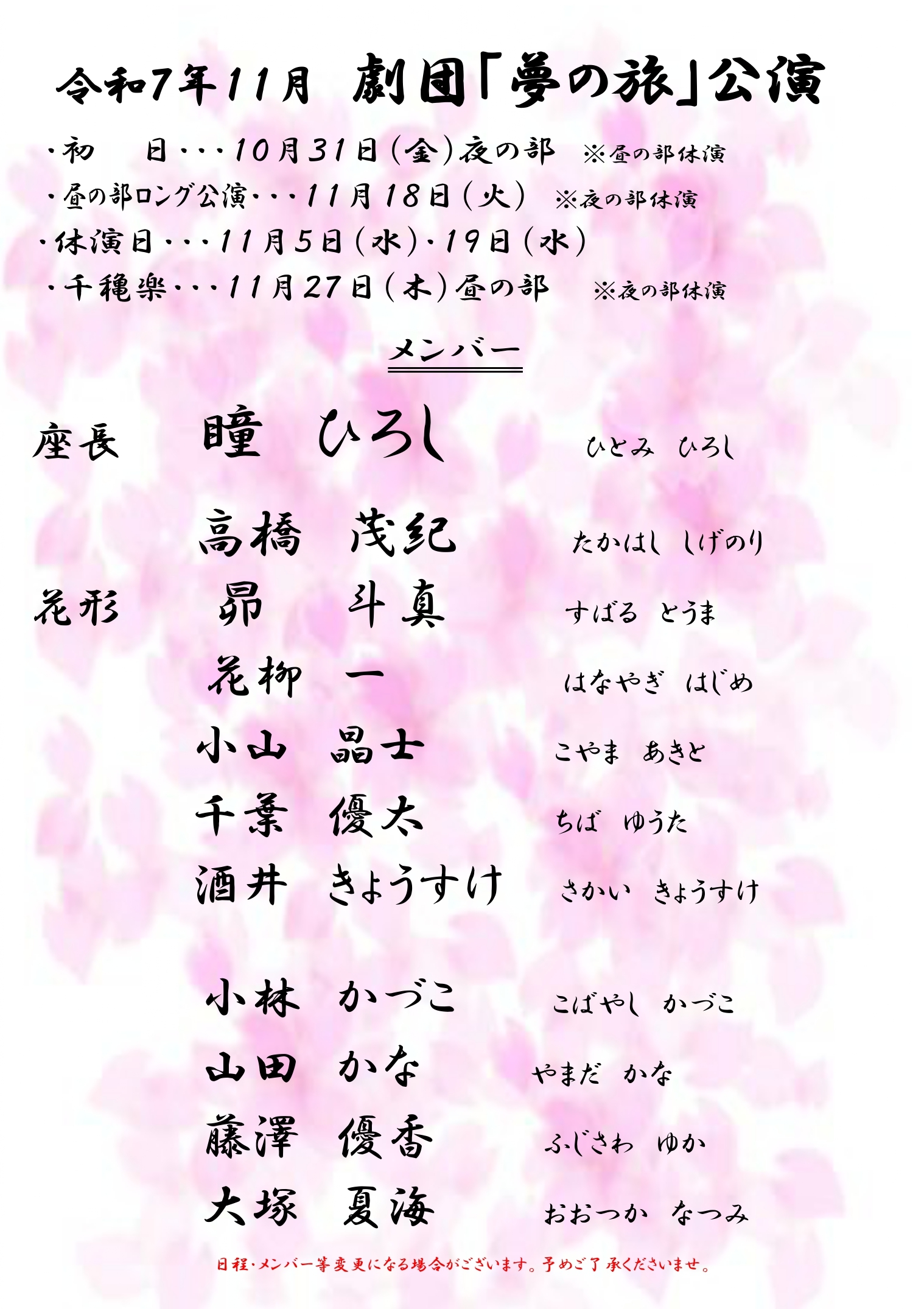 ・昼の部ロング公演…11月18日(火) ※夜の部休演