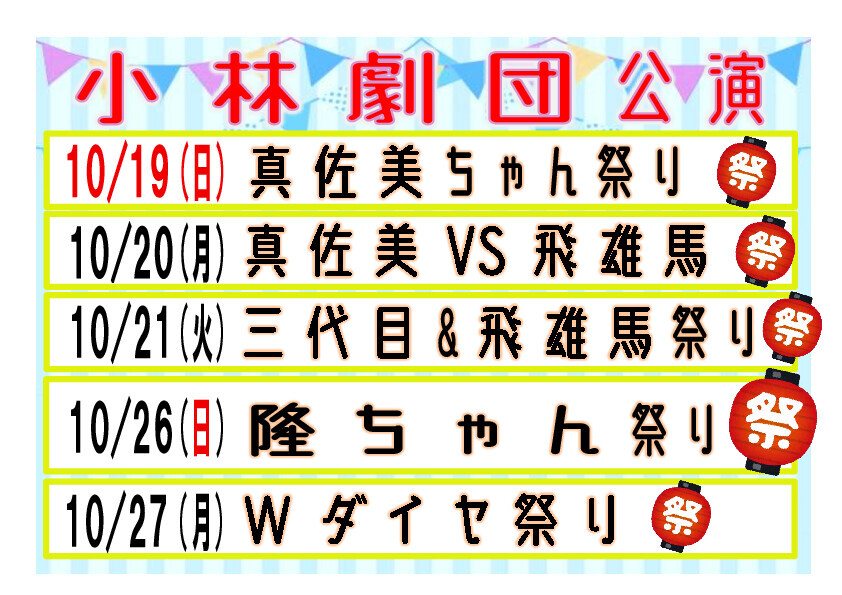 10月22日(水)・23日(木)は座長花形大会の為、通常の公演ではございません。