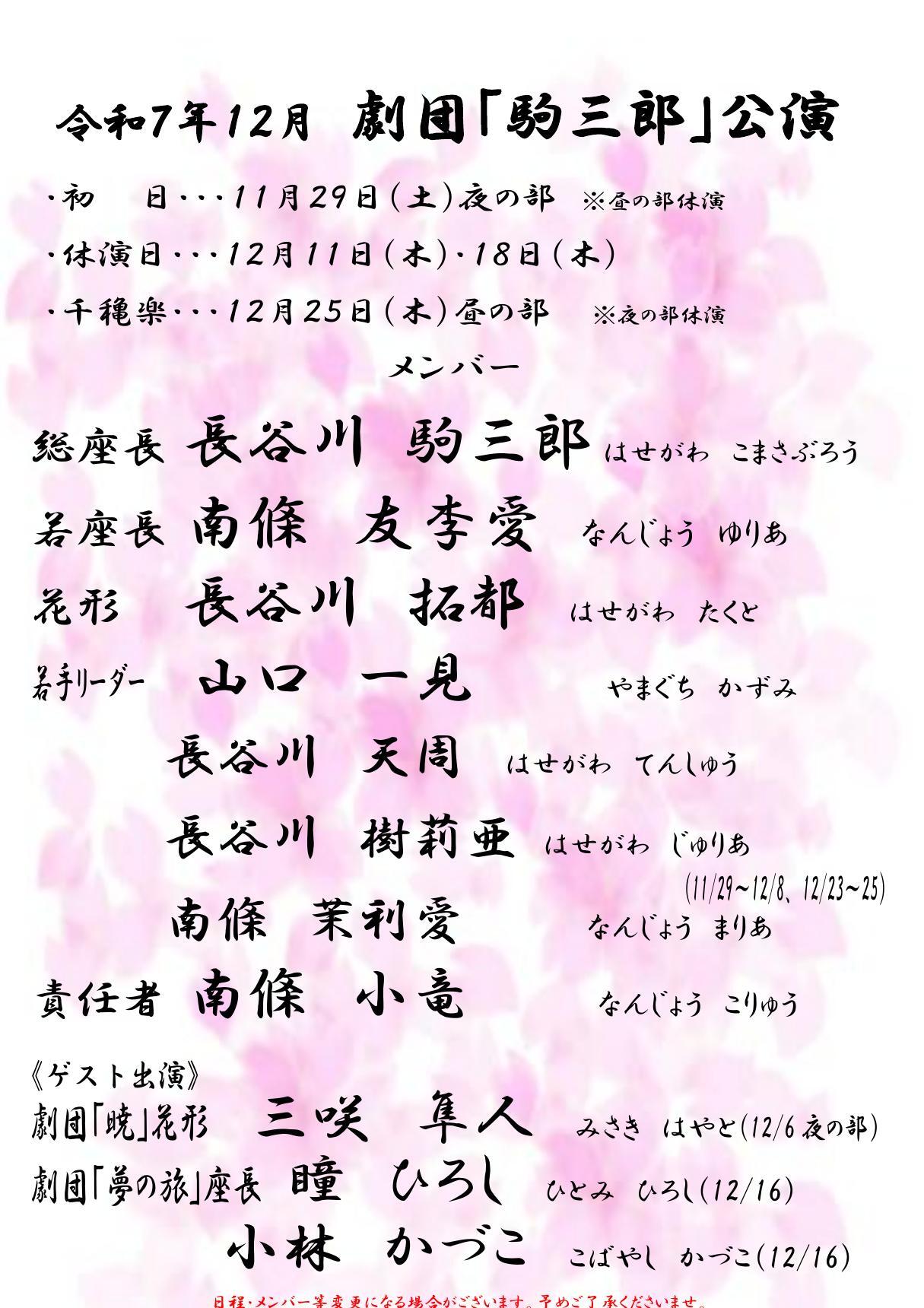 令和7年12月は、劇団「駒三郎」公演です。
