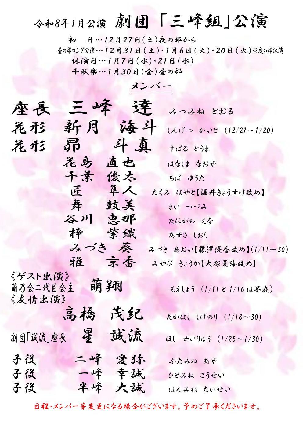 ・千穐楽…1月30日(金)昼の部 ※夜の部休演