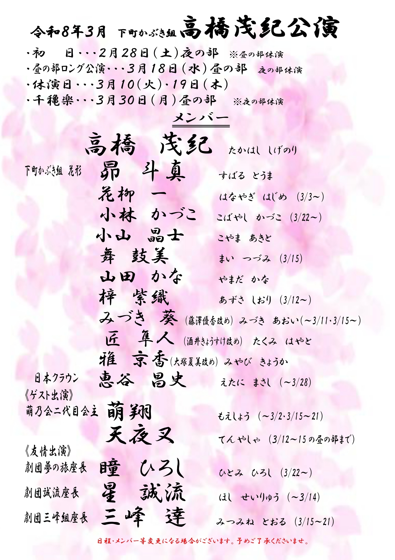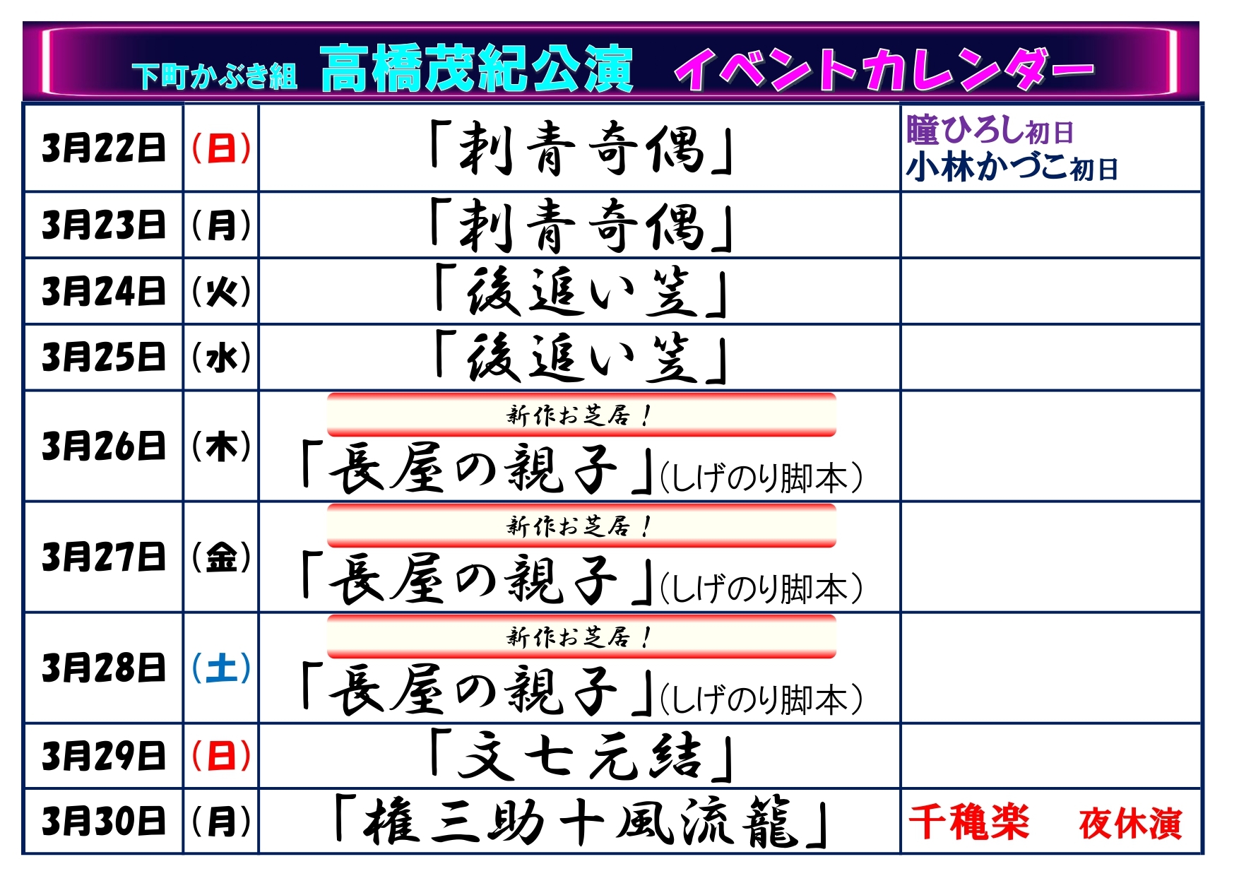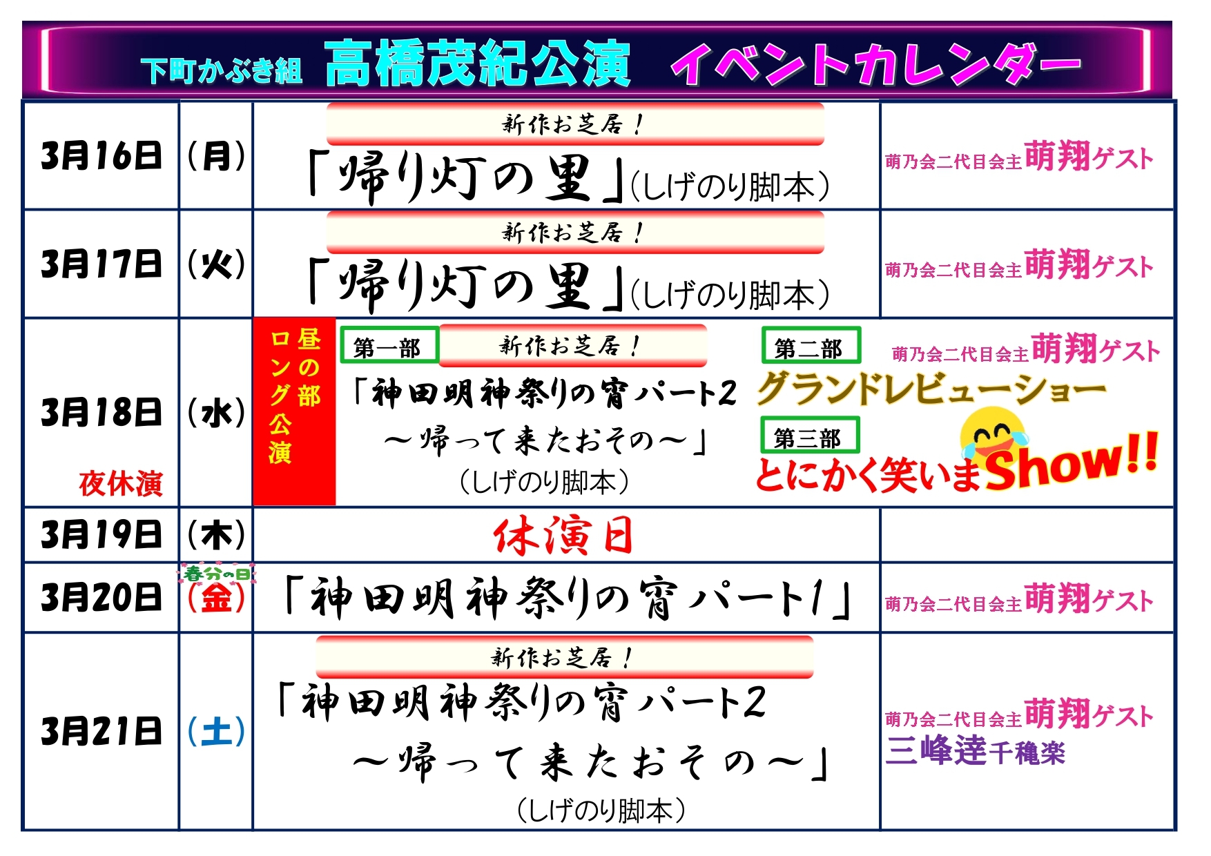 ・昼の部ロング公演…3月18日(水) ※夜の部休演