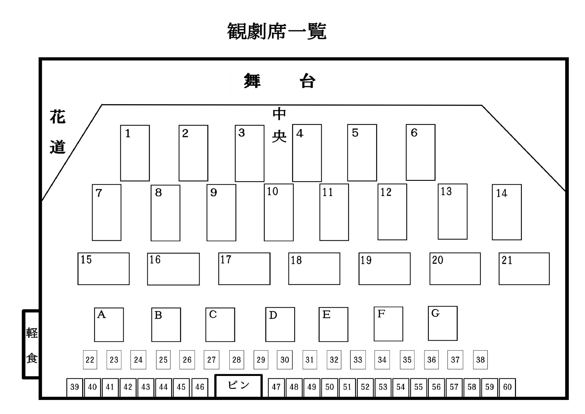 39~60…洋椅子席(1名様 ひと席予約料¥550)